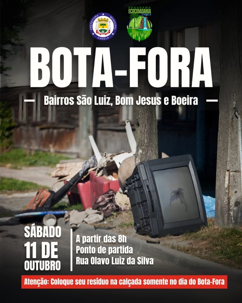 A Prefeitura de Canela, por meio da Secretaria de Meio Ambiente e Urbanismo, realiza neste sábado, dia 11, mais uma edição do Bota-Fora, destinado ao recolhimento de resíduos eletrônicos e volumosos. Desta vez, os bairros beneficiados serão São Luíz, Bom Jesus e Boeira. O recolhimento inicia às 8 horas, a partir do nº 540 da Rua Olavo Luiz da Silva.