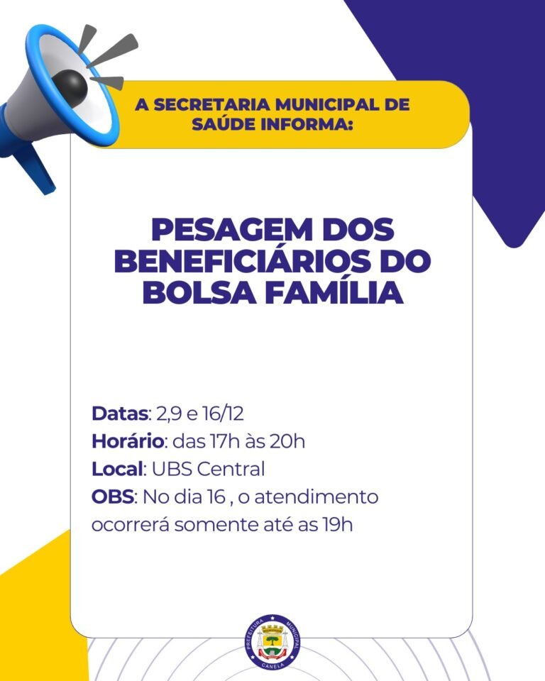Pesagem do Bolsa Família poderá ser realizada no turno estendido da UBS Central em dezembro 28 de novembro de 2025