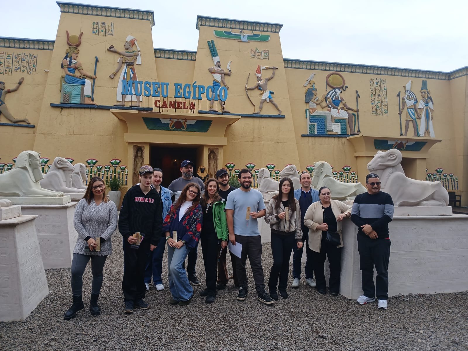 Encerrando a programação, no domingo, os servidores visitaram o Museu Egípcio Canela, espaço com amplo acervo histórico sobre o Egito Antigo. A visita foi guiada pelo proprietário, o artista Essam Elbattal, responsável pela imponente fachada inspirada na cultura egípcia. No local, o grupo conheceu réplicas de sarcófagos, múmias, hieróglifos, pirâmides e uma coleção dedicada ao faraó Tutankhamon.
