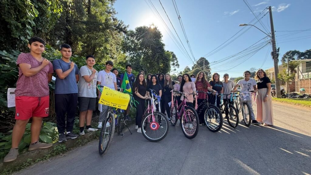 Com o objetivo de trabalhar conceitos matemáticos de forma dinâmica e criativa, a Escola Ernesto Dornelles realizou, na última semana, uma iniciativa inovadora com os alunos do 9º ano. A atividade “Matemática em Movimento com Bicicletas” foi um sucesso entre os estudantes.